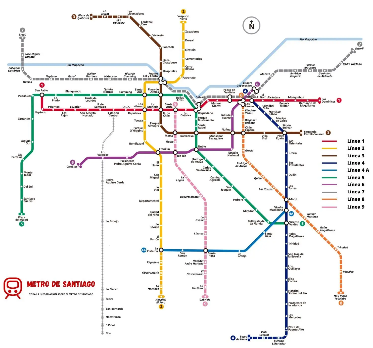 El Mapa del Metro de Santiago es una herramienta esencial para los usuarios del sistema de transporte público más importante de la ciudad. Este mapa representa las diferentes líneas y estaciones que conforman la red, facilitando la planificación de los viajes.